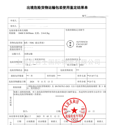 危险特性: 需注明“腐蚀性,8类”,UN编号“3261”。