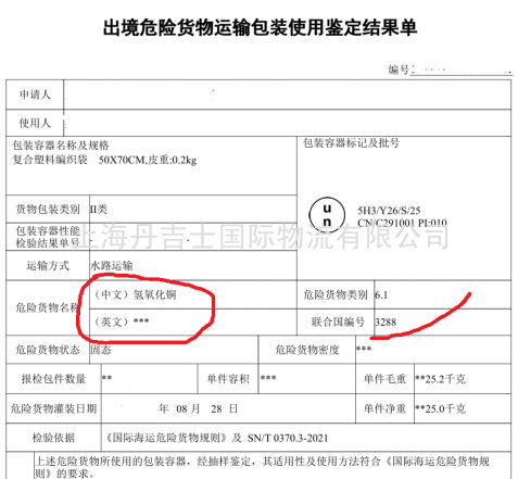 运输标识:在任何危险品运输文件(空运、海运、陆运)及包装上,