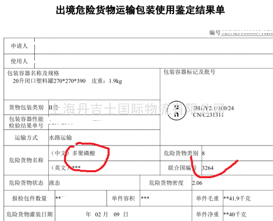 正式运输名称: CORROSIVE LIQUID, ACIDIC, INORGANIC, N.O.S.