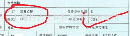 正式运输名称: 三氟乙酸 危险类别: 8 - 腐蚀性物质 包装类别: I