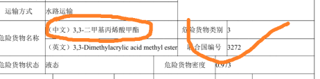3,3-二甲基丙烯酸甲酯UN编号:3272 CLASS 3