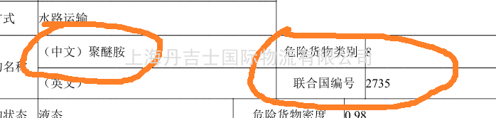 聚醚胺海运属于8类危险品,英文名称: Polyether amine