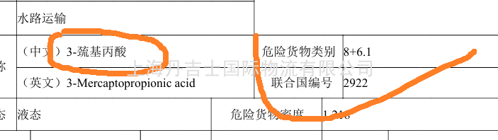 3-巯基丙酸出口属于危险品