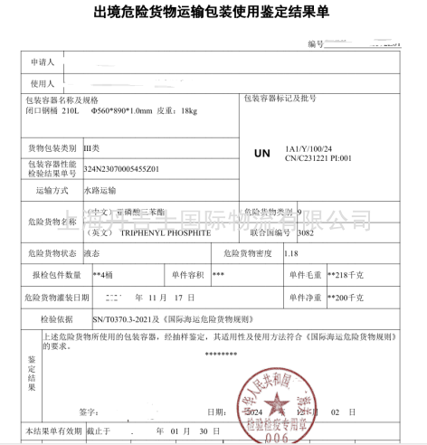 亚磷酸三苯酯在运输中通常被归类为UN3082, CLASS 9。主要原因如下: