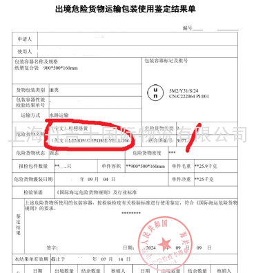 柠檬铬黄海运属于危险品