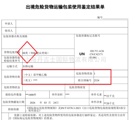 该商品为3类易燃液体(UN 2524,包装类别III),