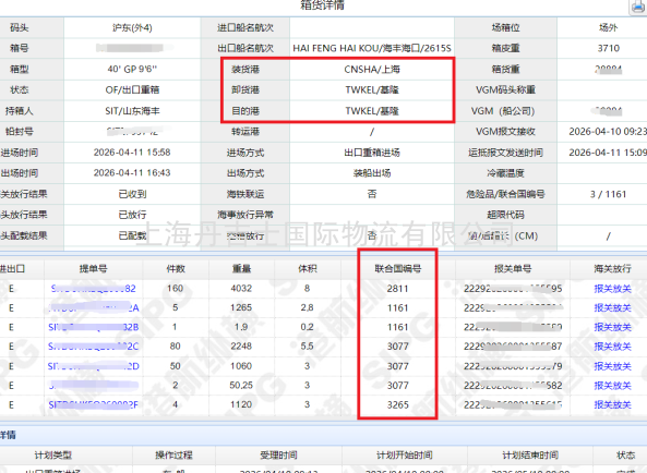 近日顺利完成一票从上海港(CNSHA)出口至台湾基隆港(TWKEL)的危险品海运拼箱业务。