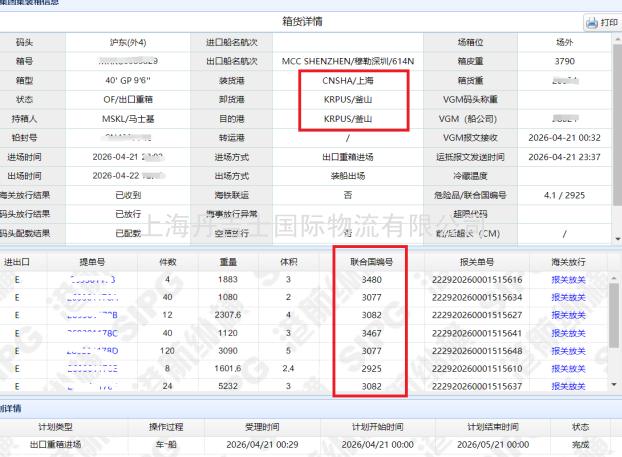 针对液态(UN3082)与固态(UN3077)混合货物,我们采用底部固定+防泄漏托盘策略,